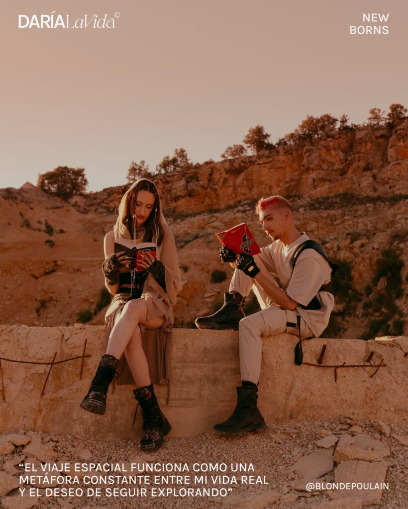 La ciencia ficción me ofrece una distancia emocional desde la que hablar de lo íntimo sin hacerlo de forma literal. Es el espacio donde Pablo y Blonde Poulain se separan y se encuentran: realidad y fantasía se entrelazan, permitiendo que las canciones funcionen como metáforas abiertas a la interpretación de quien escucha.