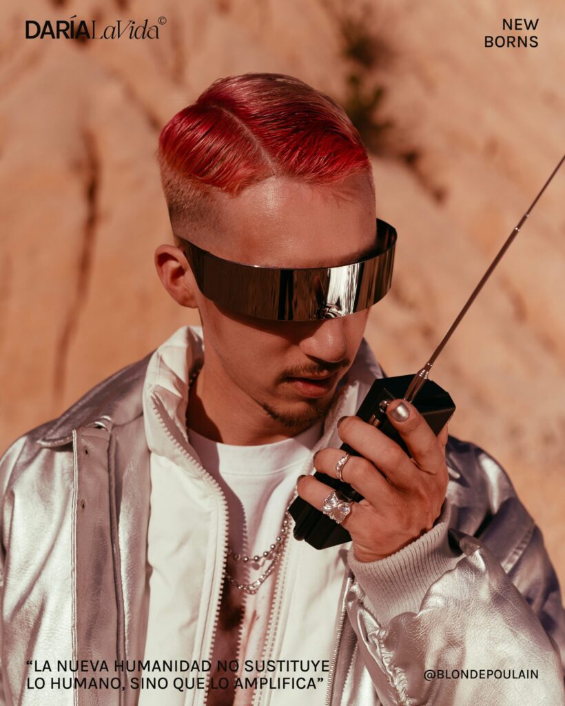 Me interesa esa frontera entre lo real y lo artificial: cuidar los instrumentos orgánicos en directo, pero abrazar la tecnología desde una mirada transhumanista. Me inspiran tanto los androides de Blade Runner como cyborgs reales como Neil Harbisson, Manel de Aguas, Moon Ribas o Pol Lombarte. Creo que la nueva humanidad no sustituye lo humano, sino que lo amplifica, y ahí es donde quiero situar mi proyecto.
