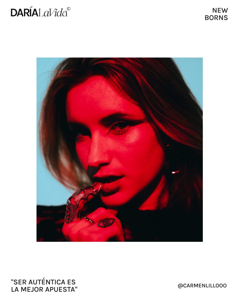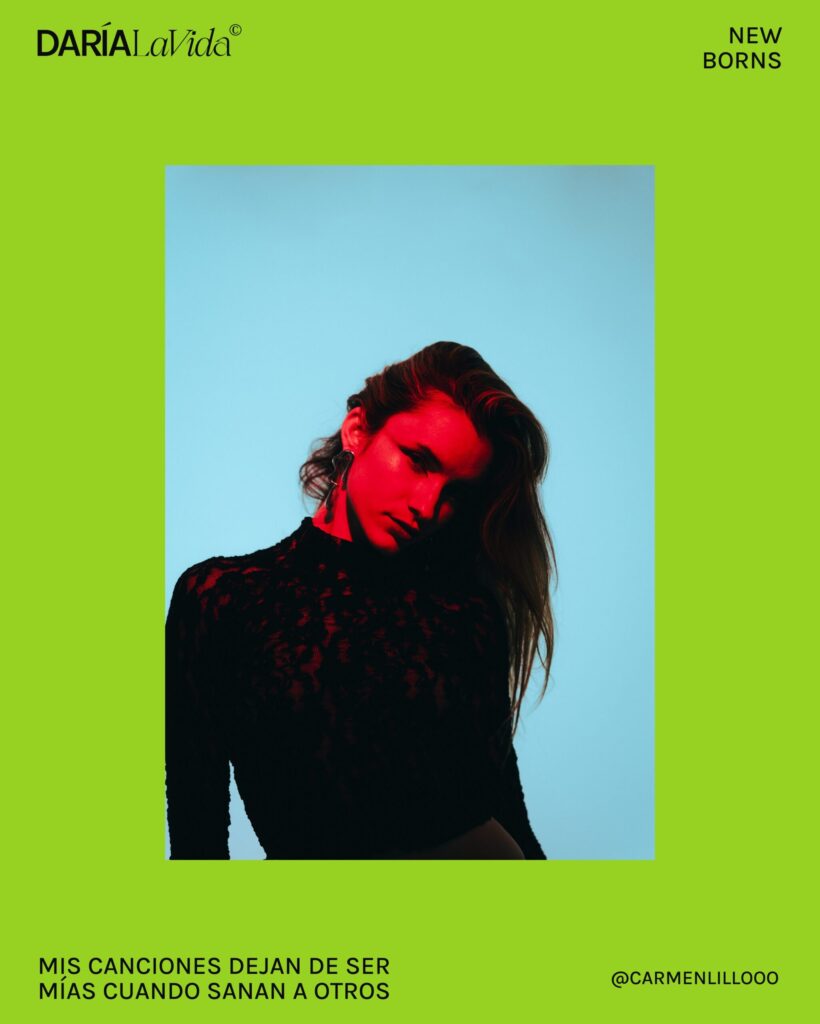 Mis letras parten de lo cotidiano, de emociones que todos vivimos, pero siempre las rodeo de cierto misticismo: hablo de la luna, de las estrellas, del cielo, porque para mí son símbolos de algo más grande. Siempre he dicho que cuando canto es cuando más Carmen me siento, entonces la espiritualidad nace de esa conexión conmigo misma y lo que me rodea cuando canto. Luego, esa esencia se mezcla con una producción electrónica que mira al futuro, con sonidos que distorsionan la realidad y la llevan a otro nivel. Es un contraste que me encanta, porque crea una especie de magia dentro de cada canción.
